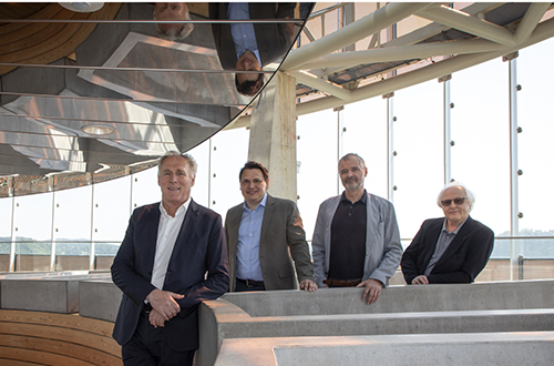 Über Stadtteilentwicklung in Zeiten der Digitalisierung diskutierten im Rahmen der Citycom-Gesprächsreihe WeITblick Hans Höllwart (Science Tower Graz), Igo Huber (Citycom), Christian Nußmüller (Stadtbaudirektion Graz) und Markus Pernthaler (Architekt).